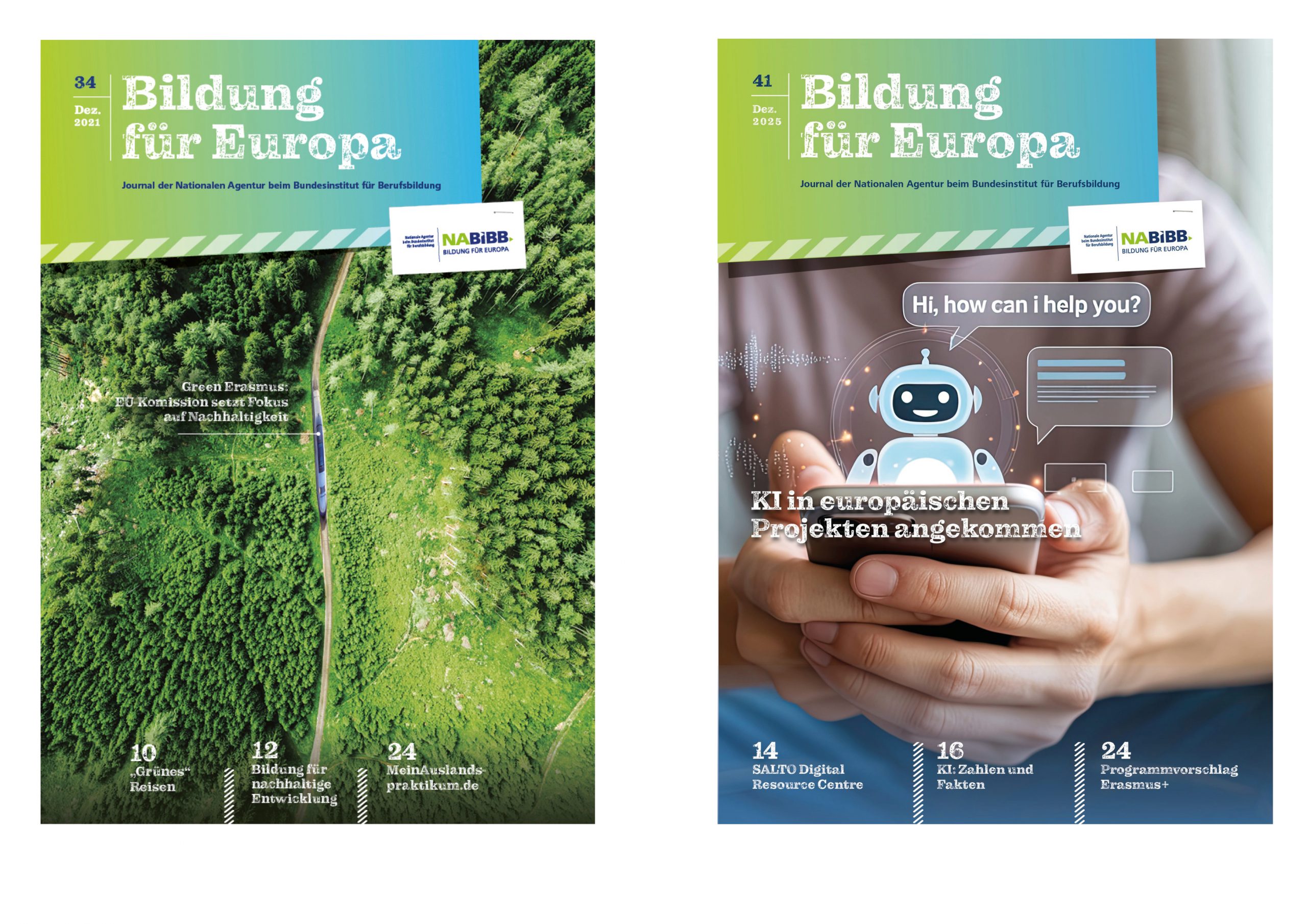 Blueberry ist als Lead-Agentur seit 2014 für das Gesamterscheinungsbild der Nationalen Agentur beim Bundesinstitut für Berufsbildung und seinen Programmmarken verantwortlich. Dazu gehören auch das jährlich 2x erscheinende Journal „Bildung für Europa“ und der Jahresbericht. Blueberry entwickelte für beide Publikationen ein neues Editorial Design, angelehnt an das neue Corporate Design. Jahresbericht und Magazin erscheinen in frischer, moderner Aufmachung und entsprechen damit noch mehr den aktuellen Bedürfnissen und Lesergewohnheiten der heterogenen Zielgruppe. 2018 kam das neue Medienformat „Studie“ hinzu, das mit der aktuellen Mobilitätsstudie den Trend der weltweiten Auslandsaufenthalte in der Berufsbildung mittels übersichtlicher und aussagekräftiger Infografiken abbildet.